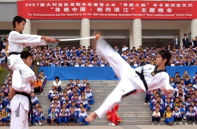 “寻根之旅”冬令营前后历时10天,20名营员在湛江市进行了中国民族舞蹈、中华武术、中国醒狮和汉语学习,先后参观了湖光岩、中澳友谊花园、观海长廊等,并游览了雷州、廉江等风景名胜。