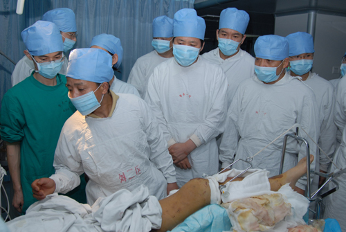 专家组组长、骨科教授查振刚介绍说,小男孩右腿大量肌肉坏死,多处血管神经损伤,开放性伤口,大量骨块游离,损伤严重,是相当罕见的复合性外伤。同时他表示:“我们将尽最大努力,用最好的医生最好的技术,在保证生命的同时,确保其身体功能最大限度的恢复。”