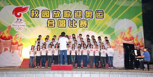 参赛的同学们以嘹亮的歌声表达出对祖国的热爱,对奥运的期盼。比赛中,一支专门由留学生组成的参赛队尤为引人关注。他们饱含激情、歌声圆润,演唱的《红河谷》赢得了观众的阵阵掌声,把整场比赛推向了高潮。