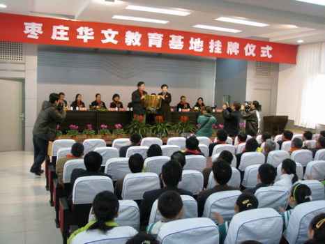 12月8日,山东省侨办在枣庄市文化路小学举行了华文教育基地挂牌仪式,国务院侨办文宣司和山东省侨办有关方面领导出席了挂牌仪式,枣庄市副市长李守义、枣庄市侨办主任薛传明等做了讲话。来自泰国泰北地区华校访华团一行观摩了该基地,并接受了基地小朋友们赠送的红领巾。