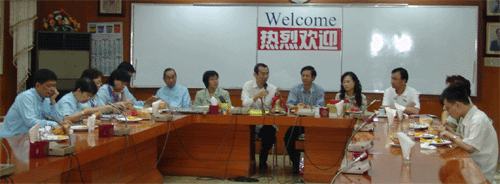 在会议室举行座谈会时,颜主席简单地介绍了本中心的情况,提出了中国方面合作的意向。柯院长感慨来到这里既感到亲切,又感到到处充满中华文化氛围。他表示将尽量与本中心开展多方面的合作。华南师范大学国际文化学院副院长方小燕在讲话中,强调她受广东省侨办的委托,答应对本中心的合作提供方便,提供力所能及的支持。华南师范大学文学院副院长陈少华也介绍华南师范大学近年来对海外华文教育的支持,提供师资培训,吸收留学生等方案。本中心副主席黄端铭提出了双方合作的一些构想。会议结束前,宾主双方互送纪念品,并合影留念。