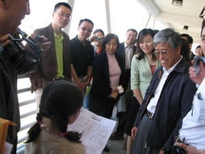 张云总领事一行听取了校方的介绍,观摩了部分班级上课情况,与学生和家长进行了交谈,并认真了解华夏中文学校所面临的挑战。张云总领事在致辞中表示,语言是不同族裔间增进了解、理解和友谊的重要桥梁,领馆一直十分重视中文教学的推广,这一事业意义重大而深远,它不仅能为华人、乃至非华裔的后代提供学习中文的环境,也能为促进中美关系在各领域交往提供便利与平台。华夏中文学校顺应时代潮流,从只有几十个学生发展到今天超过千名学生的规模,所取得的成绩值得肯定。特别是学校在四个方面给人留下深刻印象,即目标明确、管理规范、团队合作、社区支持。相信华夏中文学校能继续开拓创新,办成社区中文教育和文化传播的知名品牌。领馆愿在促进中文学校发展,推广中文教学方面提供便利与协助。