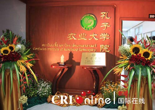 7月7日,泰国农业大学孔子学院隆重举行揭牌仪式。中国驻泰王国公使衔参赞张国庆,国家汉办代表、使馆教育官庞利女士,泰国农业大学乌迪差校长,华侨大学吴承业校长,泰中经济文化协会会长威七上将,诗琳通公主府副秘书长瓦碧隆上将,华侨大学董事高梧桐、华侨大学董事、泰国留学中国大学校友总会主席罗宗正、副主席张永青、丁文志、张祥盛,华侨大学泰国校友会会长曾纪贞,厦门大学泰国校友会代表,福建会馆代表、友好学校博仁大学、拉嚓帕•庄甲盛大学、泰国华侨崇圣大学等学校领导,在泰兄弟孔子学院中泰方院长,华侨大学代表团,农业大学各院系、研究所负责人及农大学生等社会各界人士300余人出席典礼。