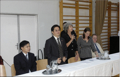 双语学校校长琳德奈尔·古斯塔芙内在讲话中介绍了学校的情况。她说学校在假期之间进行了整修,增添了新设备,希望同学们、特别是新同学能喜欢学校。她感谢匈、中政府、关心学校的人士和华文媒体对学校给予的关注和帮助。校长最后宣布2008年——2009年学期开始。校长并邀请梁参赞、王庆年等嘉宾参观了学校的新设施。(王于燕)