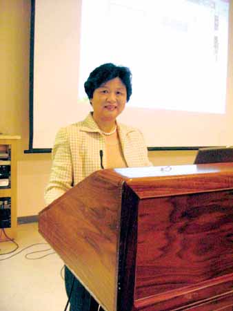 在讲座中,李晓琪教授在对比汉语与英语、日语和韩国语不同语法特点的基础上,重点说明了在教授欧美学生学习汉语中要特别注意的特殊语法问题,主要包括:语序问题(基本语序、状语语序、时间原则等)、补语问题(不同补语类型特点介绍及教学方法)、离合词(见面、结婚等)问题(离合词的特点及重点离合词的使用)、量词问题(量词类别及常用量词使用方法)以及各类虚词(副词、介词、连词和助词)的特点和运用。还特别针对北美中文教师的需要,以实例演示了如何在对外汉语教学中有效地进行相关语法教学。