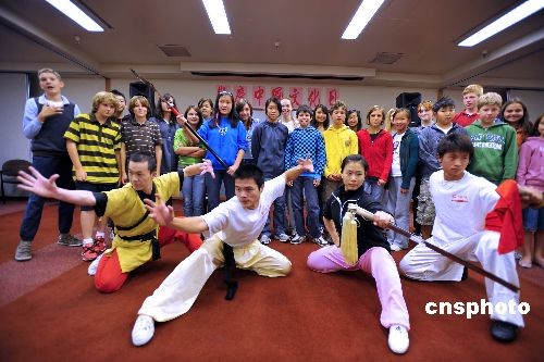 当日的文娱表演精彩纷呈,中国音乐艺术欣赏、古筝表演,湾区Pure少林功夫馆和本学武林寺少林功夫馆的师傅们表演了少林拳、醉棍等经典武术项目,高潮迭起。“北京奥运”、“云南风光”、“中国故事油画作品”、“中国戏曲人物画作品”、“中文图书”为主题的图片和实物展览让学生们感受真实的现代中国。(刘海平)
