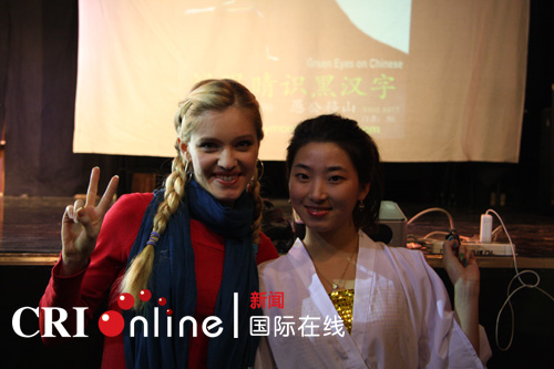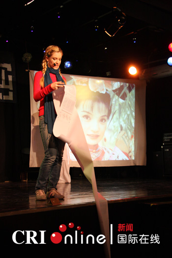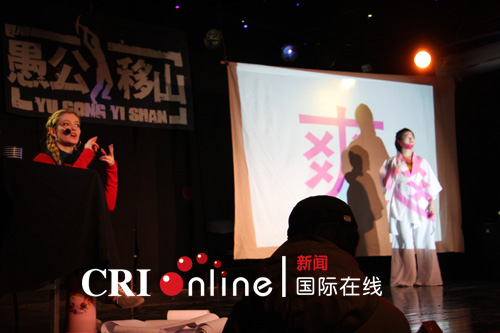 美国女孩柳素英创建的顽皮猴子戏剧社日前在北京上演了话剧《绿眼睛识黑汉字》。
