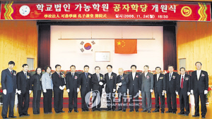 11月24日韩国当地时间下午3时30分,河北省石家庄42中与韩国泰成高中联合成立的“孔子课堂”正式揭牌。中国驻韩国大使程永华、教育参赞艾宏歌、河北教育厅副厅长李胜利、42中校长李亚卿和韩国红十字会前总裁徐英勋、京畿道知事金文洙、龙仁市市长、泰成高中校长尹文德等近30名知名人士参加了揭牌仪式,这是我省在韩国开设的首家“孔子课堂”。