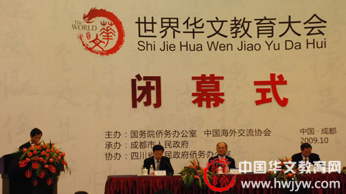 10月21日下午,首届世界华文教育大会在成都国际会展中心隆重闭幕。国务院侨办副主任赵阳致闭幕词,四川省侨办主任周敏谦,成都市侨办主任冯跃国在闭幕式上致辞。闭幕式由国务院侨办文化司、宣传司司长刘辉主持。