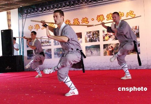 开班典礼上,来自不同国家的华裔青年庄重地用中国传统方式施叩问师礼,部分已经习武多年的学员还和禅武中心的教练们一起表演了中国传统功夫。