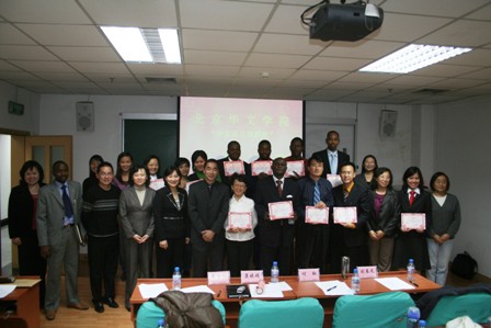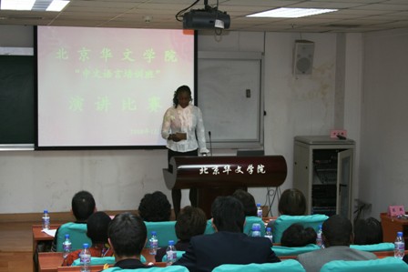 2008年12月4日下午,“中文语言培训班”汉语演讲比赛在北京华文学院顺利举行。此次演讲比赛共有29名同学参加,其中有许多同学才学了3个多月的汉语。演讲内容涉及到祖国介绍、北京生活、学院游教活动、语言学习等。他们的演讲声情并茂,博得了阵阵掌声。尤其是两位越南学员带来的相声表演非常精彩,超出了评委的预期,被授予特别奖。