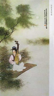 浔阳江头夜送客,枫叶荻花秋瑟瑟。主人下马客在船,举酒欲饮无管弦。