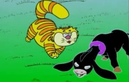一天,驴子一声长鸣,老虎非常害怕,远远地逃走;认为驴子将要咬自己,非常恐惧。然而老虎来来往往地观察它,觉得驴子好像没有什么特殊的本领似的,渐渐地习惯了它的叫声,又靠近它前前后后地走动;但老虎始终不敢和驴子搏击。慢慢地,老虎又靠近了驴子,态度更为随便,碰擦倚靠、冲撞冒犯它。驴非常愤怒,用蹄子踢老虎。老虎因此而欣喜,盘算此事,心想到:“(驴子的)本领只不过如此罢了!”于是跳跃起来,大声吼叫,咬断驴的喉咙,吃完了它的肉,才离去。