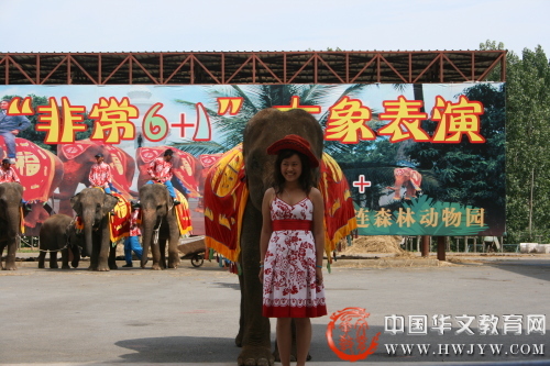 在大象表演园和大象互动