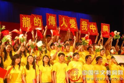 28日下午,200多名营员欢聚在普陀少年城,参加闭营式和汇报演出。尽管只学习了短短两个星期,但小营员们的刻苦努力还是换来了可喜的成绩。他们亲手描摹的国画、书法和脸谱,共同排演的小品、朗诵、武术、舞蹈和民歌,充分展现了中华艺术的魅力和夏令营的累累硕果。喜悦之余他们又有一点伤感,图为 菲律宾营员在闭营式上演唱《同一首歌》。