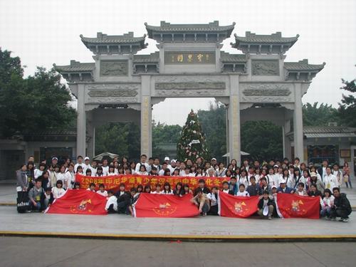 一到达宝墨园,冬令营的各位领队、营员和全体工作人员就在正门巧夺天工的白石仿古牌坊前合了影。雄伟巍峨的石雕牌坊见证了营员们在广州度过的这一段美好时光。