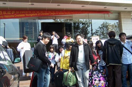 下午1:00,满载营员、领队及志愿者的客车离开了国茂大酒店,前往白云机场。大家纷纷拿出相机,拍下送别的老师、同学和生活十多天的酒店。