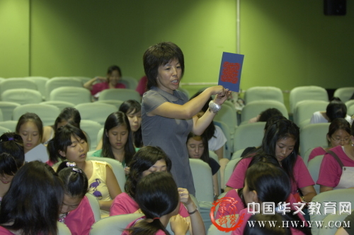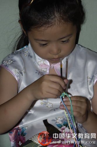 下午讲座开始了。中国文联民间文艺家协会会员吴秀莲老师向营员们讲解了中国结的来历以及中国结的在古代的用处,营员们终于了解了期盼中国结,接着老师传授给他们简单易学中国结编制方法,看着营员们认真的眼神和他们手中的线在不停的穿梭,编制着他们梦寐以求中国结。不一会他们喜悦的拿着自己的作品,高兴像身边伙伴展示着他们心爱的作品,好似手中的中国结是世界上最珍贵的艺术品。