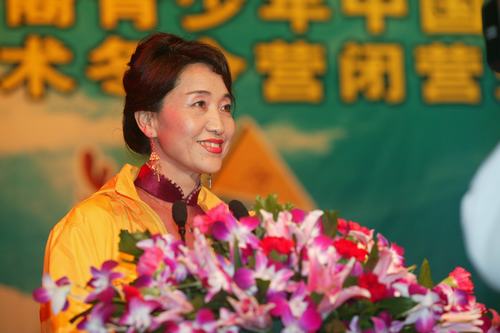 · 营员代表胡清娥在开营仪式上...