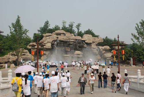 2008年7月25日,记者和营员们随车来到了位于西安大雁塔之侧的大唐芙蓉园,它是中国第一个全方位展示盛唐风貌的大型皇家园林式文化主题公园。