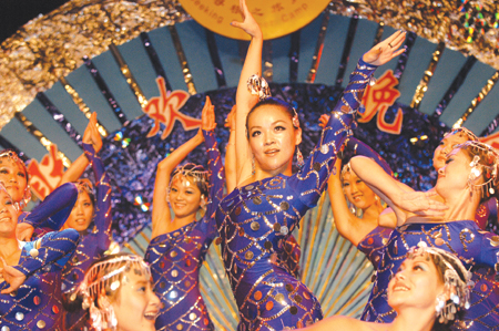 华裔营员们和温州大学学前教育学院的学生们一起表演舞蹈《年年有余》。(图片/温州都市报)