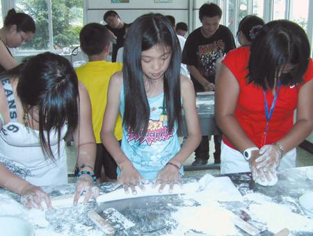 华裔青少年在华侨中学老师的指导下,学做米塑(图片/温州日报)