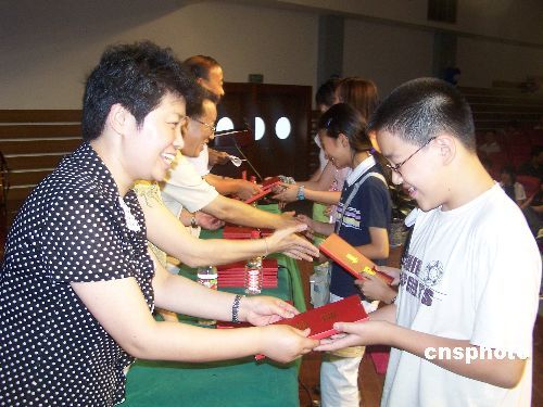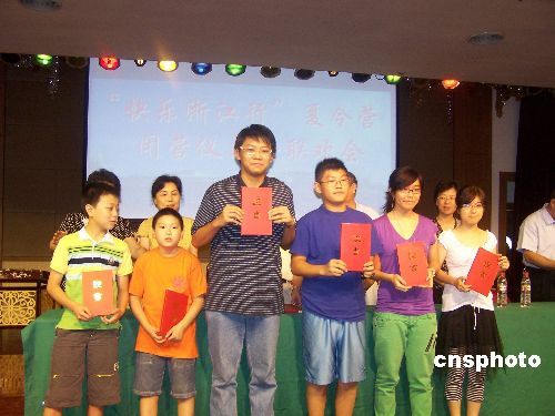 营员们高兴的领取结业证书(中新社/柴燕菲)