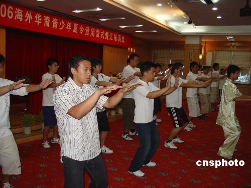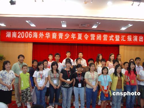 由国务院侨办主办、湖南师范大学承办的2006年中国海外华裔青少年及港澳台地区青少年“中国寻根之旅”夏令营湖南分营,7月8日下午在长少开营(中新社/肖前辉)