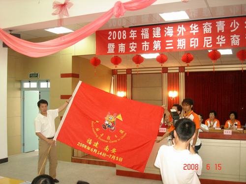 福建省侨办文宣处副处长林建华给南安夏令营授旗