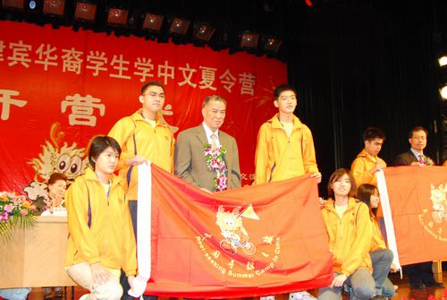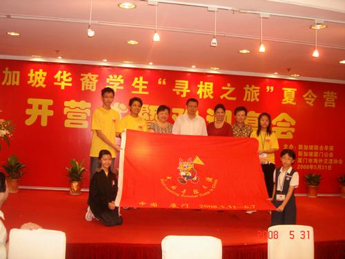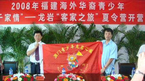 林建华副处长为香港福建中学学生迎奥运福建之旅夏令营授营旗