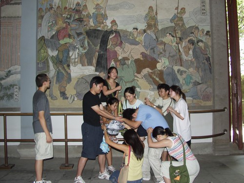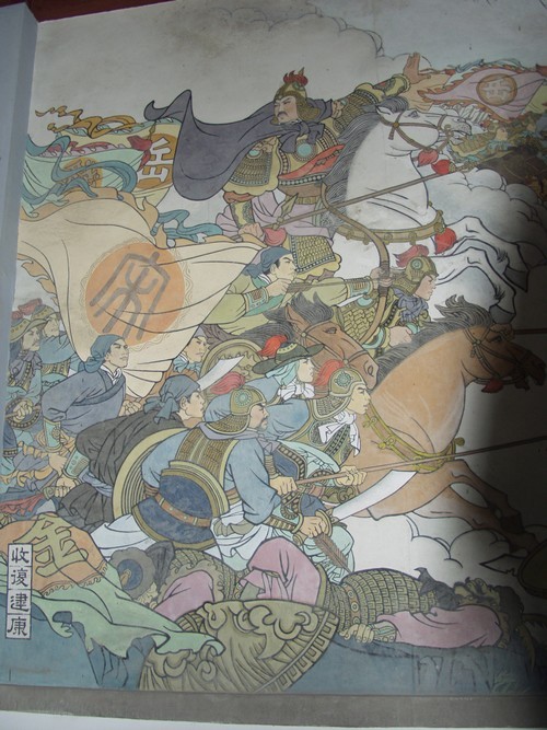 岳王庙内收复建康的壁画再现了岳飞元帅率军抗金的雄壮场面