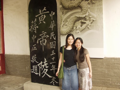 杨友宁(明尼苏达州,左)和张心佳(西弗吉尼亚州,右)在蒋中正题字碑前合影