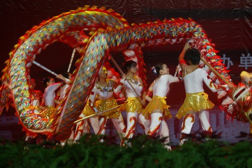 湖南师范大学学生表演《龙狮》
