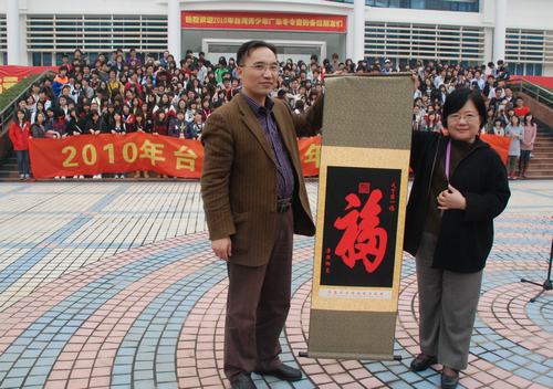 1月28日,参加2010年台湾青少年广东冬令营的师生们来到了美丽的海滨城市珠海,参观考察了暨南大学珠海学院,院长王志伟向营员们介绍了学院的发展史、学科建设及学校成就,并与冬令营营长、台北市文化艺术促进协会会长黄寤兰女士互赠礼物。