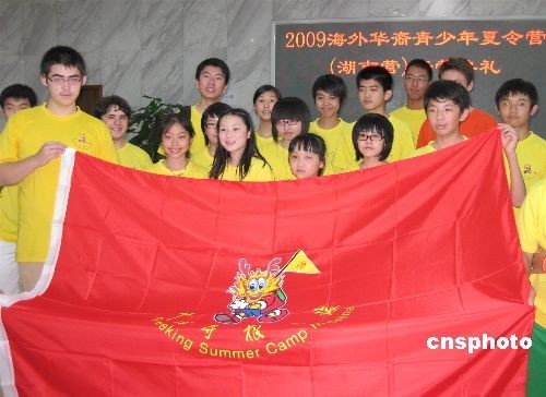 7月9日晚,来自美国、加拿大等国的50余名海外华裔青少年欢聚长沙,参加2009海外华裔青少年夏令营湖南营开幕式。