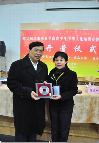 由国务院侨办主办,国务院侨办青岛大学华文教育基地承办的“2009年第二届中华文化知识竞赛马来西亚赛区优胜者冬令营”于12月17日上午在青岛大学举行了开营仪式,马来西亚侨领陈志成先生、青岛市侨办、青岛大学、青岛大学华文学院的领导与营员们参加了开营仪式。