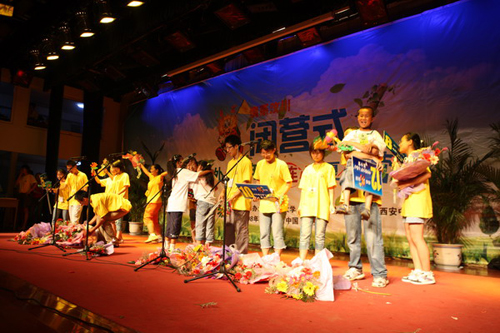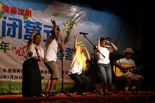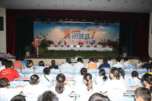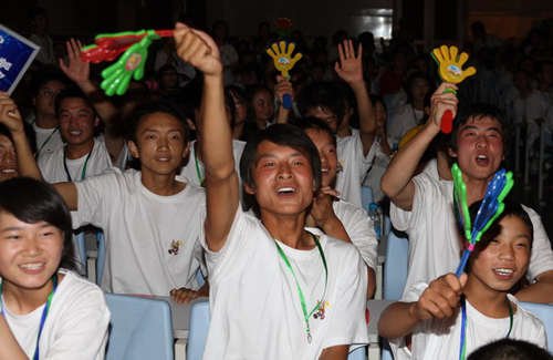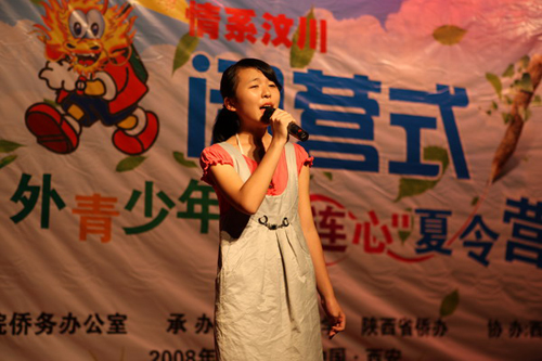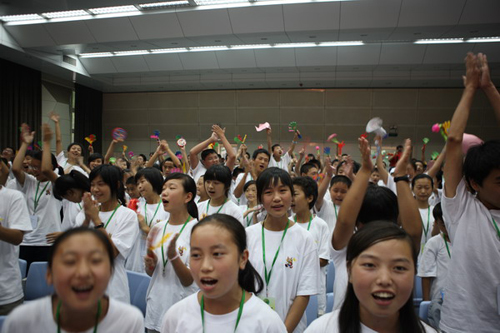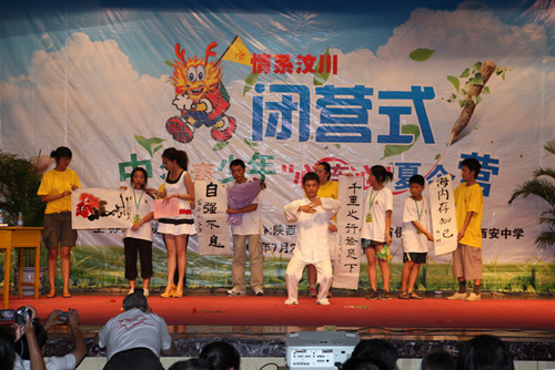 7月28日下午,由国务院侨务办公室主办,陕西师范大学与陕西省侨办承办的“情系汶川—中外青少年‘心连心’夏令营”在陕西师范大学雁塔校区积学堂隆重举行闭营仪式。国侨办文宣司副司长雷振刚、省侨办主任张宝文、陕西师范大学党委书记江秀乐,来自四川、重庆、甘肃、陕西等地震灾区的450名中小学生营员和50名带队教师,与在陕西学习的外国留学生齐聚积学堂,共同庆祝夏令营的圆满成功。