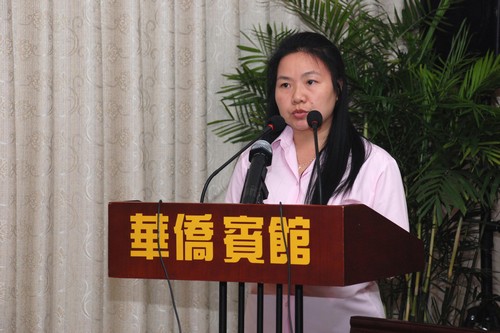 汤翠英副部长在讲话中指出,当前,世界各国学习汉语的热情非常高涨,在汉语教学中,华文教师肩负着神圣的使命,我们希望通过开展汉语推广工作,通过睦邻兴邦,增进中、老、越的友谊,促进中国与东盟国家的经济文化交流。她希望各位教师在培训班认真学习汉语基础知识,学习现代教育教学的先进理念,学习多媒体汉语课件制作技术,以便今后更好地开展汉语教学工作。她表示,为了帮助海外有关学校更好地开展汉语教学工作,中国海外交流协会将在教材、教师培训、汉语教学研究和开展夏令营等方面一如既往地提供大力帮助。