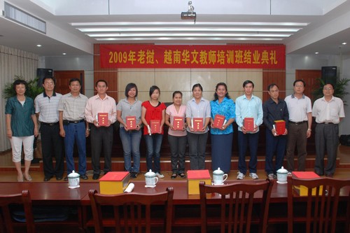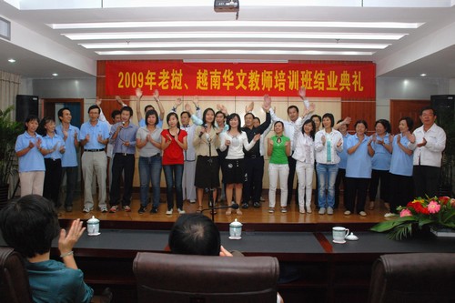 8月6日,由中国海外交流协会主办、广西海外交流协会和广西华侨学校承办的2009老挝、越南华文教师培训班在绿城南宁举行结业典礼。来自老挝、越南12所不同的学校的35名学员圆满结束了在广西华侨学校的培训学习。