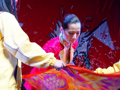 主持人逐位介绍到场领导,并邀请陈永栽先生和颜长城先生等几位领导为大会致词。在学生代表发言后,陈永栽、罗健等进行授旗仪式。仪式完毕,表演节目开始,有中国传统的舞龙和杂技,也有富有异域风情的小丑表演和美女俊男热舞,精彩无比,博得阵阵掌声和惊叫。有些节目还邀请台下菲律宾学生参与,他们生动可爱的表演,引来同伴笑声连连。
