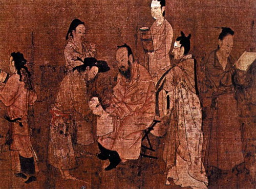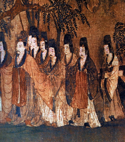 戴巾子、穿宽衫的士人(孙位《高逸图》局部)