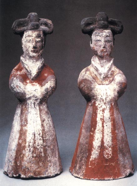 穿裤褶的男子和女子(北朝陶俑,传世实物)