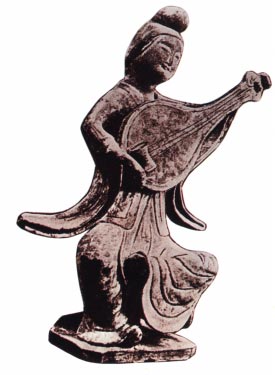 戴小冠、穿襦裙的乐人(北朝陶俑,传世实物)