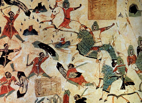 戴兜鍪、穿裆铠甲的武士(甘肃敦煌莫高窟285窟壁画)
