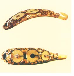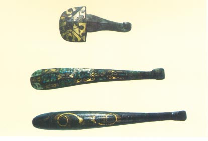 包金嵌玉银带钩(河南辉县出土战国实物)
