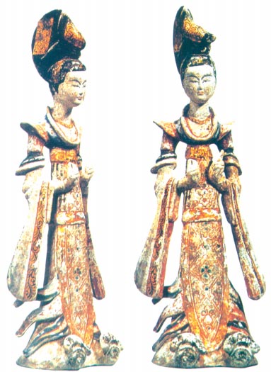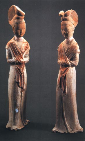 陕西西安出土隋彩绘女俑,小袖衫,高腰裙