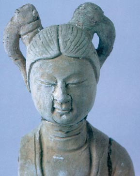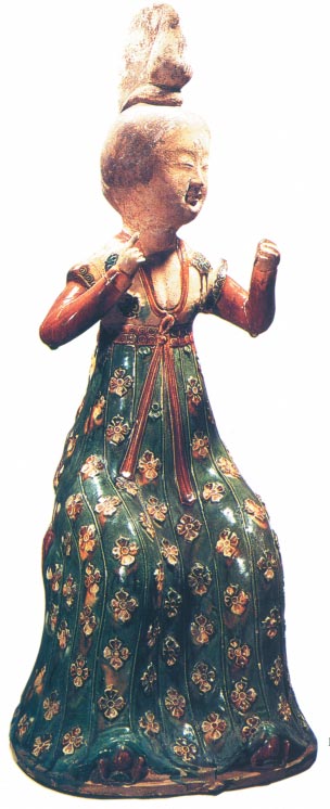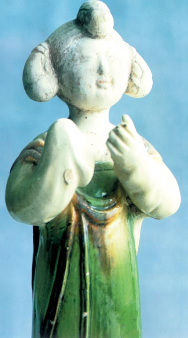 梳乌蛮髻的妇女(陕西西安鲜于庭诲墓出土三彩俑)