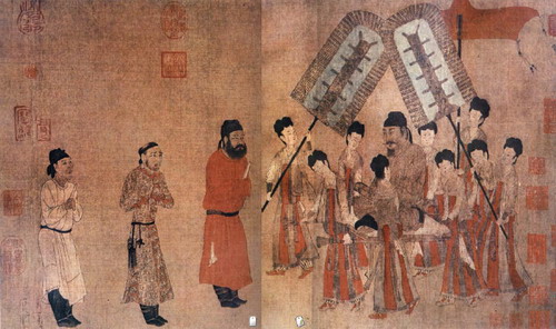 裹幞头、穿圆领袍衫的帝王及官吏(阎立本《步辇图》)
