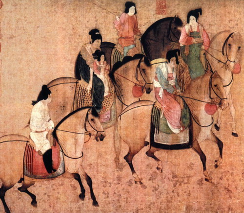 穿襦裙或袍衫的贵妇及侍女(张萱《虢国夫人游春图》局部)