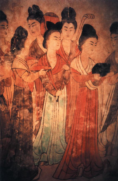 穿襦裙及半臂的初唐宫女(陕西乾县唐永泰公主墓壁画)